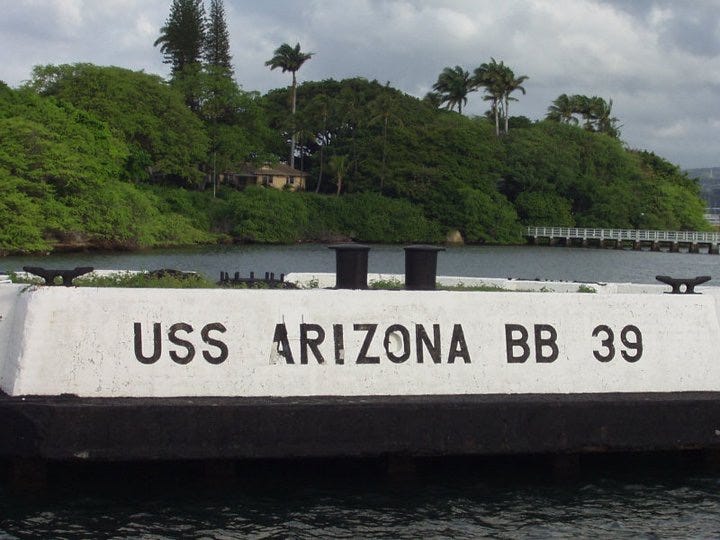 The Arizona still leaches oil, drop by drop, from its sunken hull and bilge, in a constant stream of tears that float to the surface. It’s a moving experience to know that more than 900 sailors’ remains are entombed there. The remains of many other sailors, airmen, and soldiers of all combatant navies and merchant marines litter the Pacific Ocean’s depths from that theater of the last truly global war.