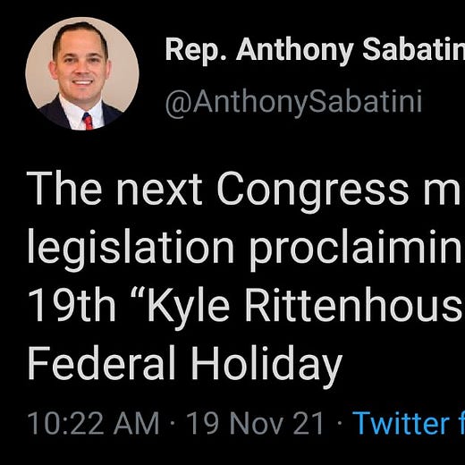 We seem to have avoided riots in the wake of the verdict and that’s a good thing. The danger that we face now is that future demonstrations will be patrolled by Rittenhouse copycats with itchy trigger fingers. There’s also a strong possibility that demonstrators will arm themselves for their own protection against what Steve Berman calls cosplay soldiers and “playtriots.” Giving Rittenhosue a complete pass with not even a slap on the wrist for his own errors in judgment could easily lead to a deeper spiral of political violence that is not good for America.