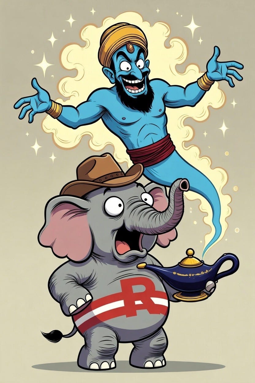 The response of congressional Republicans to all this is to try to rein in Trump’s excesses and extend congressional control over Operation Epic Fury. JUST KIDDING! They would never do that!