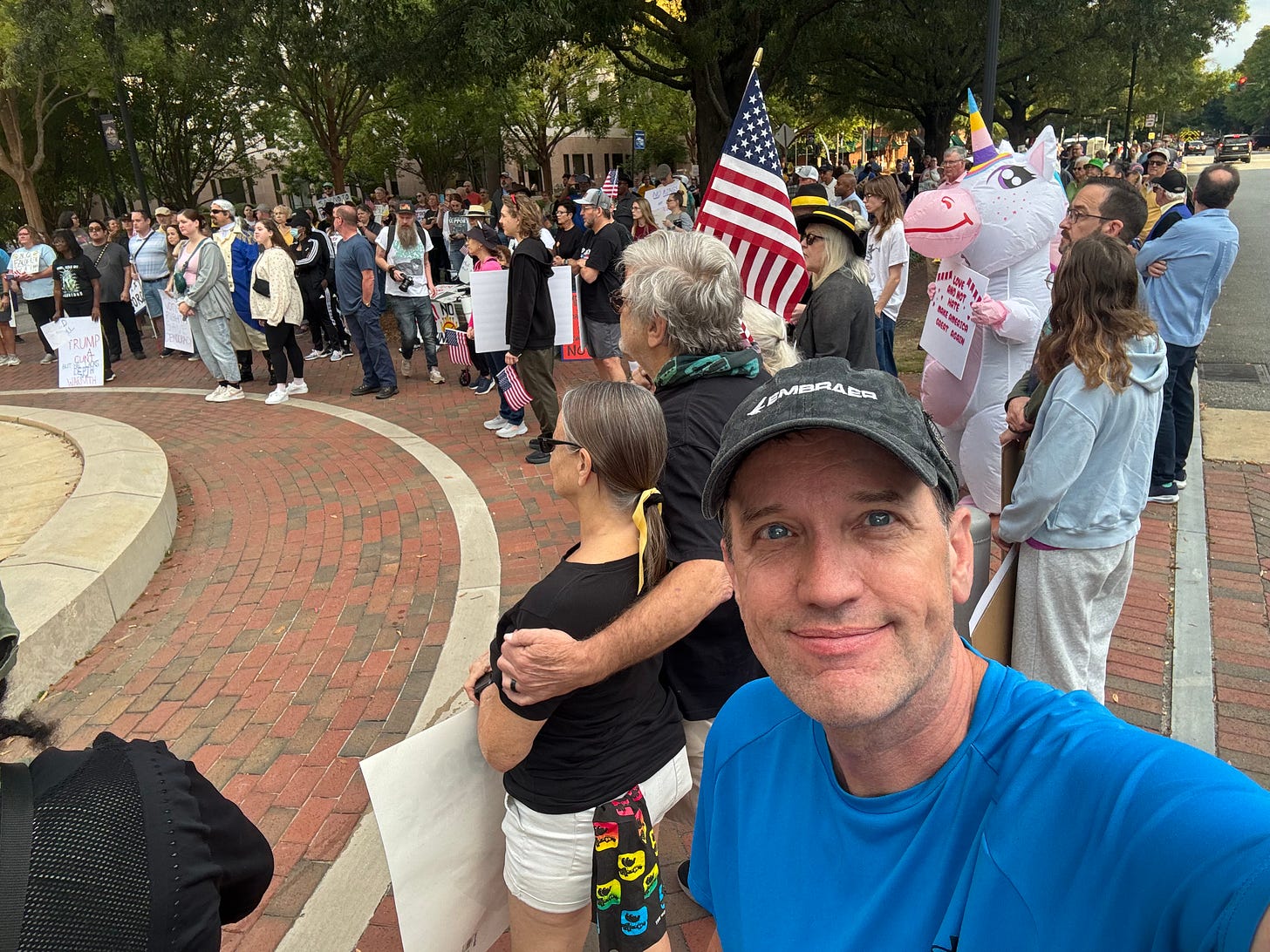 In the interest of full disclosure, I did end up leaving the rally early to spend time with my son before he had to fly out. My purpose was not to be there from beginning to end, but to stand up and be counted.