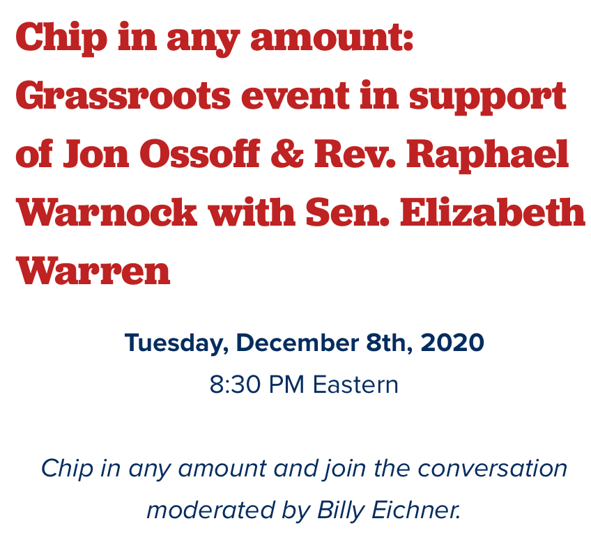 The Democrats are trying to raise any amount you can give as they line up Jon Ossoff (who?) and Rev. Raphael Warnock against incumbent Sens. David Perdue and Kelly Loeffler. The other night, the candidates, minus Perdue, faced off in a debate where Loeffler failed to admit President Trump lost the election, and Ossoff was so brave to call Perdue’s empty chair a “coward” for sitting out the debate. None of it made any difference.