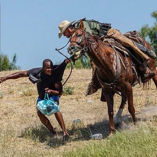The thing that really gets to me from this video, though, is the thorough lack of professionalism on the part of the Border Control agents. Fifteen seconds into the video above, we see an agent yelling at one of the Haitians about how their "country is shit", when the only words out of their mouths should be instructions to go back to the border and get back to Mexico. This wasn't acceptable when Trump was talking about "shithole countries" and it's not acceptable from a representative of the US government and the Biden administration. It casts doubt on the agent's ability to uphold the law impartially, and I'd fire the guy were I in charge. And if there are any 1/6 sympathizers in the Border Patrol (or law enforcement in general), they should be purged from the ranks and told to find employment elsewhere.