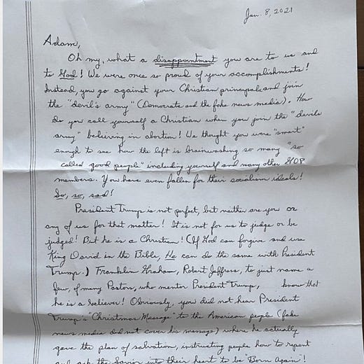 I know it to be small comfort and of no true consequence, but I’m proud of men like Rep. Kinzinger. No matter what his family members may say or do to hurt him, it reveals more about their lack of connection to God’s heart than his. How unfortunate that they now believe the way to God is through Donald Trump.