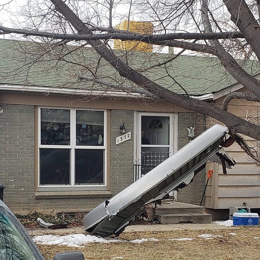 Another video, taken from the ground in Broomfield, Colorado, a Denver suburb, shows large pieces of the aircraft falling from the clouds to the ground.